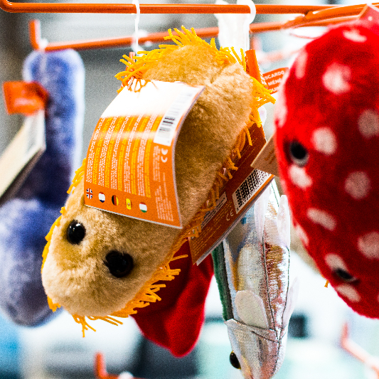 GIANTmicrobes® are stuffed animals that look like tiny microbes — only a million times actual size! They're humorous, educational, and fun.